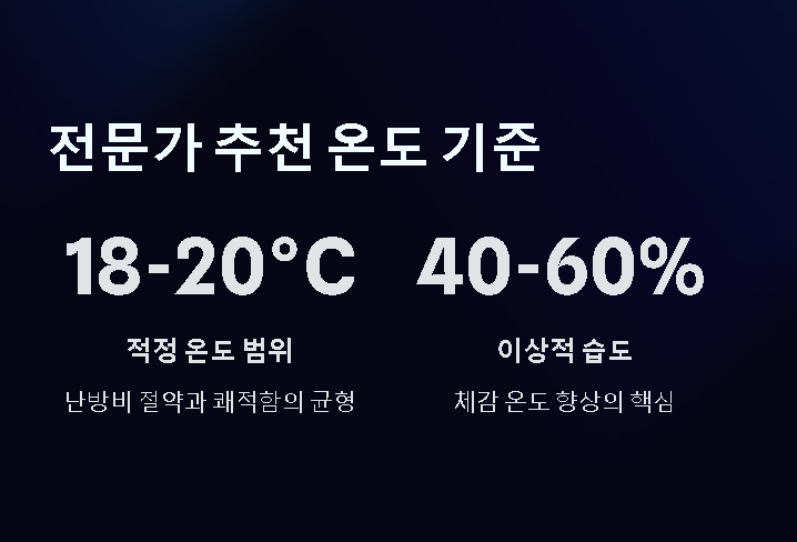 대부분의 전문가가 추천하는 겨울철 실내 적정온도는 18~20도 사이입니다. 이 범위의 겨울철 실내 적정온도는 난방비 부담을 줄이면서도 일상생활에 무리가 없는 수준으로 평가됩니다. 또한 습도를 40~60%로 유지하면 같은 겨울철 실내 적정온도에서도 체감 따뜻함이 올라 효율이 크게 향상됩니다.